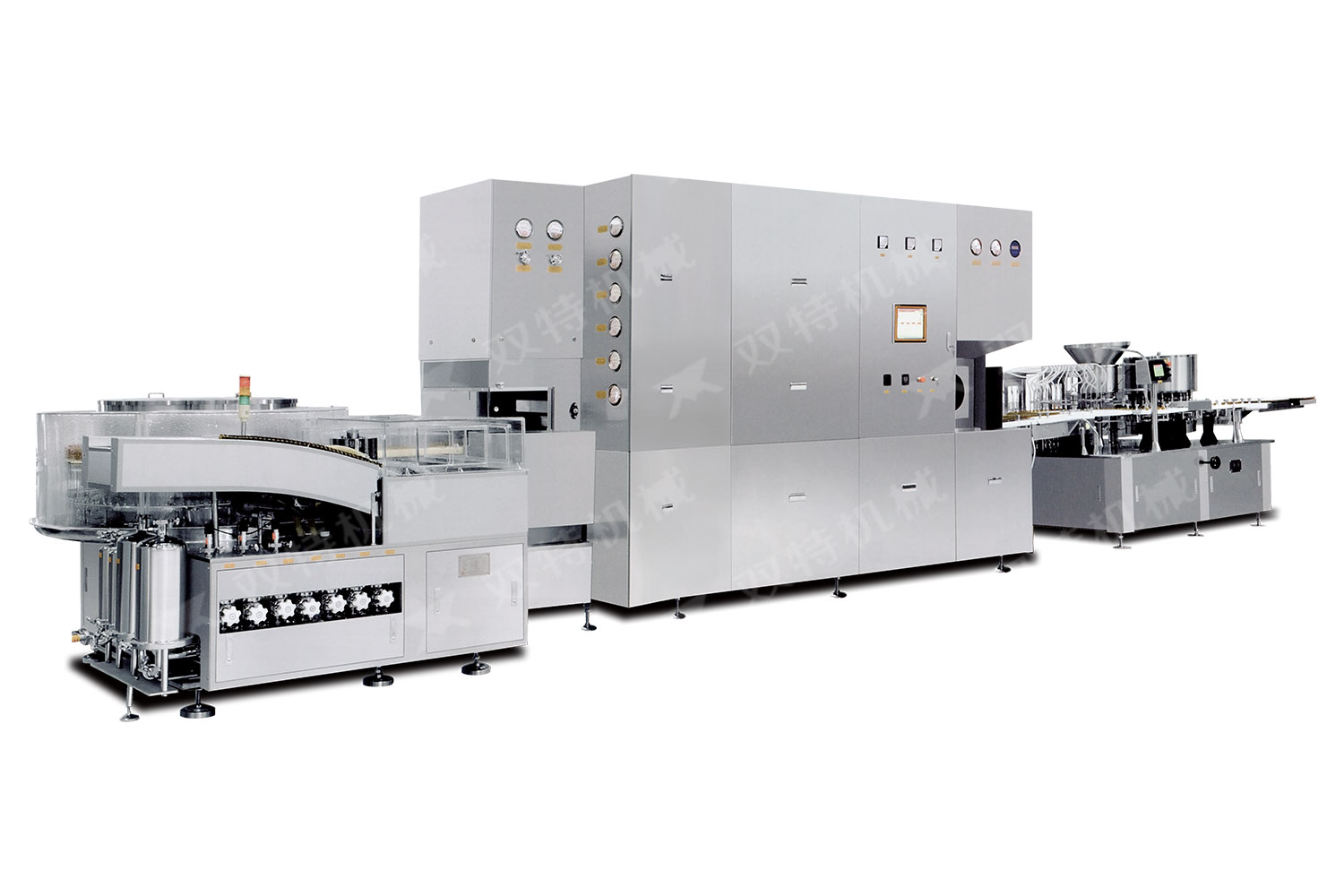 口服液灌裝生產(chǎn)線由超聲波洗瓶機、隧道式熱風(fēng)循環(huán)滅菌烘箱、口服液灌裝軋蓋機等組成,適合于2-25ml等不同規(guī)格口服液瓶的生產(chǎn)??赏瓿蓪λ幤飞a(chǎn)中安瓿瓶淋水、超聲波清洗、沖水、充氣、烘干滅菌、冷卻、灌裝、軋蓋等工藝步驟的聯(lián)動運行。