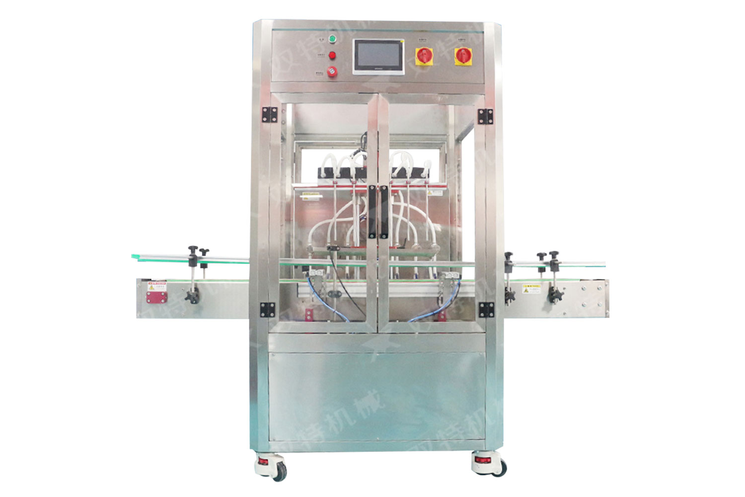 辣椒醬灌裝機械采用活塞定量,集機電、氣動于一體,由觸摸屏,PLC控制,設(shè)計合理,結(jié)構(gòu)緊湊,外形美觀,具有性能穩(wěn)定可靠、灌裝精度高、適應(yīng)性強、操作簡單、維護方便等特點。辣椒醬灌裝機廣泛適用于各種半流體、膏體、粘稠體、濃醬、醬料和各種含顆料物料的灌裝。如糖漿、果肉飲料、蜂蜜、芝麻醬、番茄醬、果醬、花生醬、辣椒醬以及各類辣椒醬灌裝。